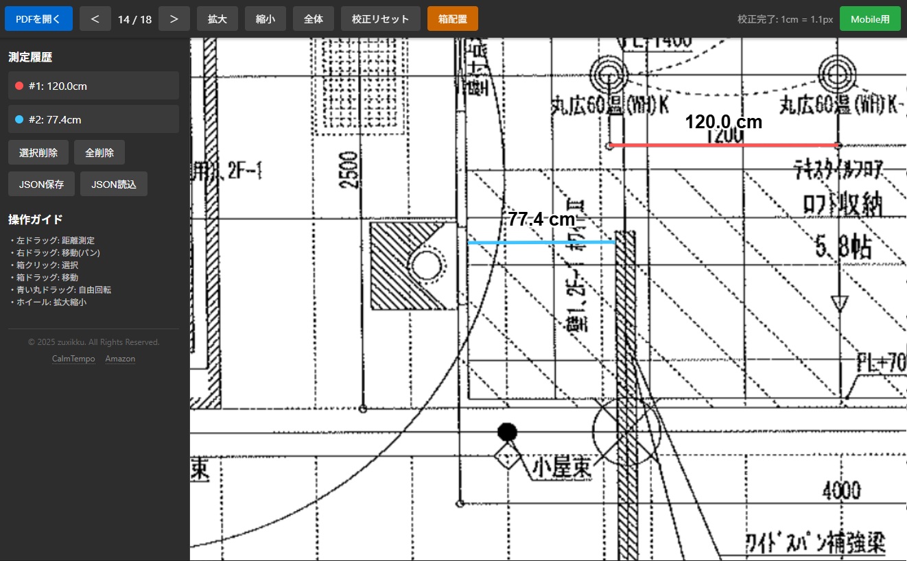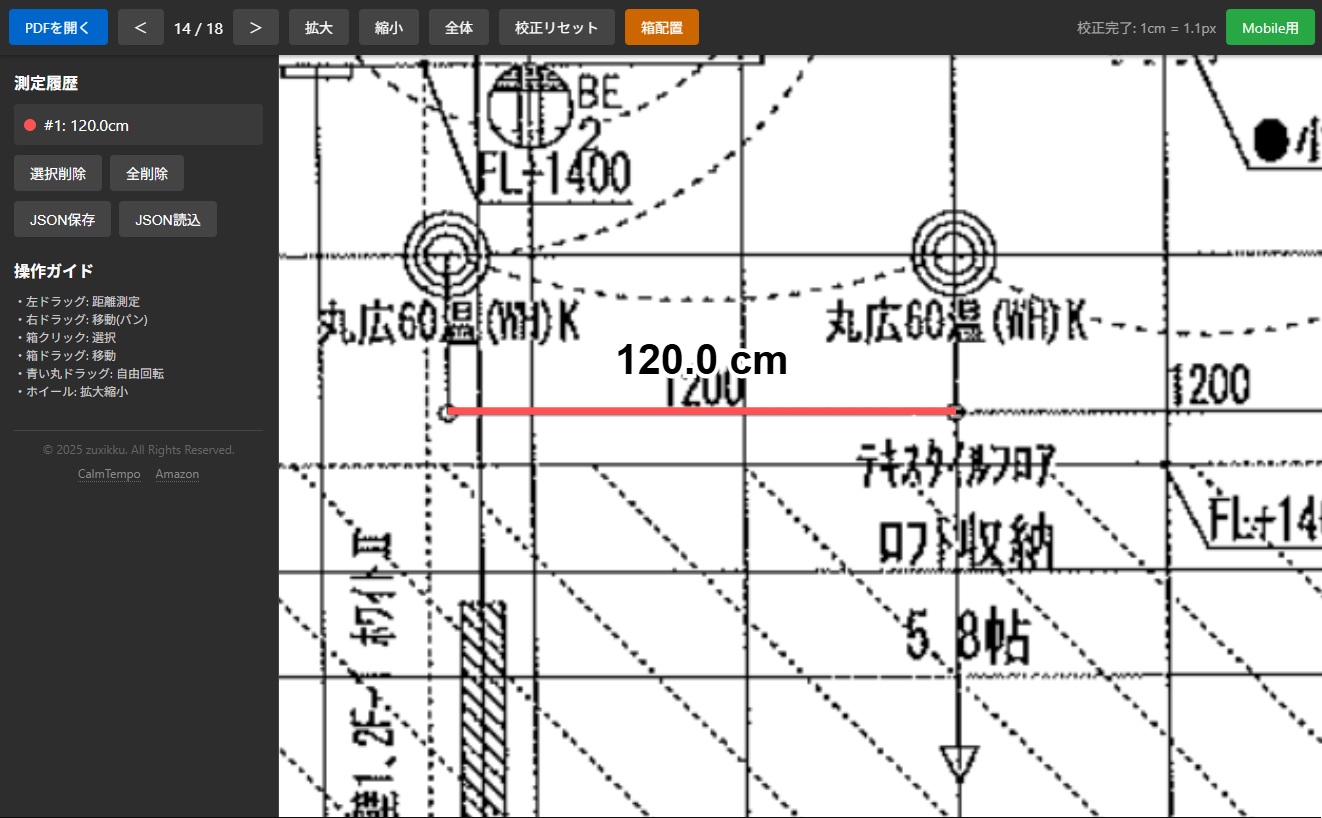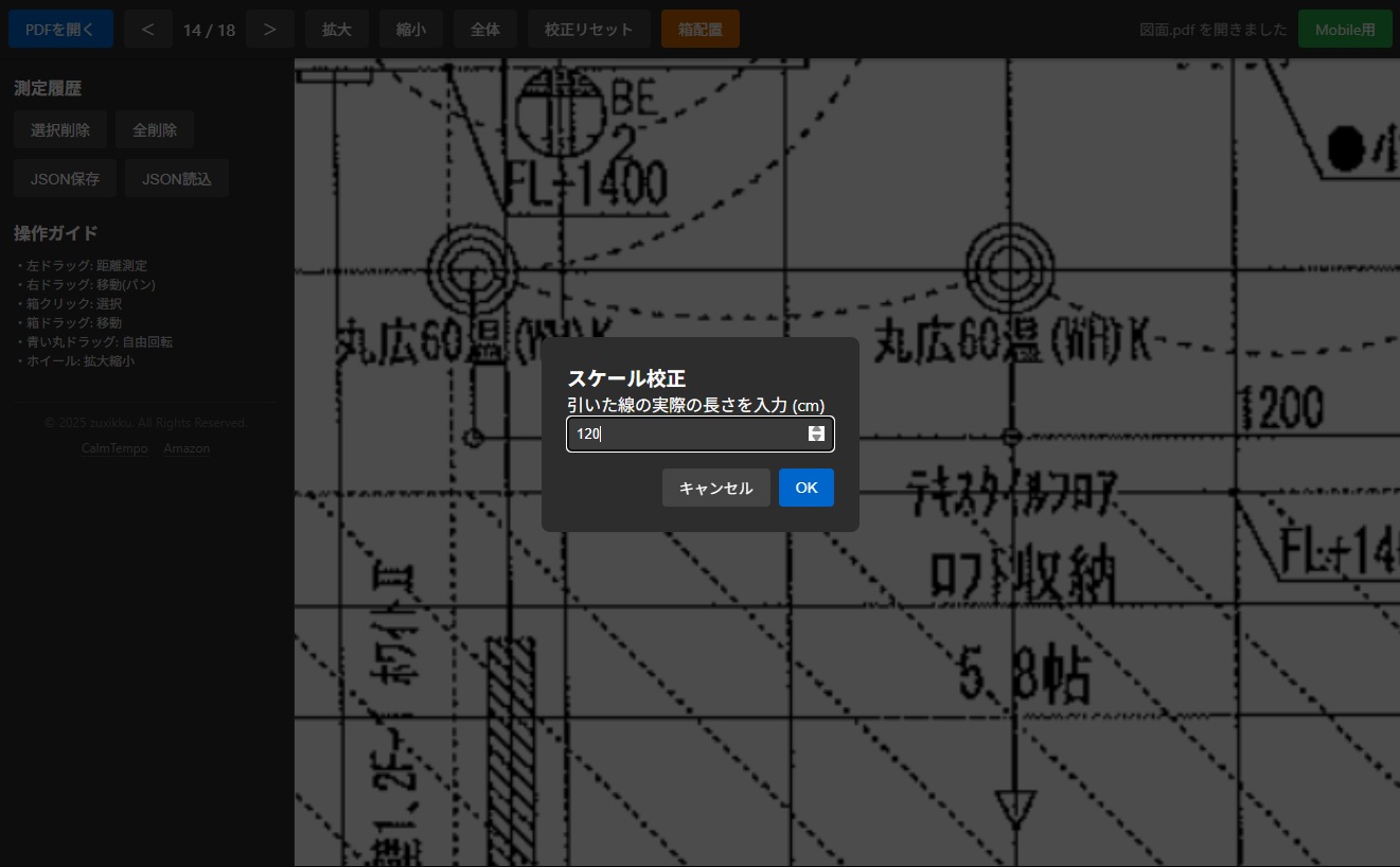PDFの図面距離計測ツール