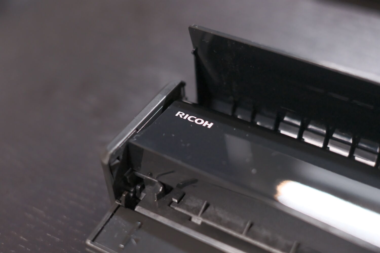 私が今までもっていたScanSnapは富士通のロゴが入っていたが、iX110はRICOHの文字が。