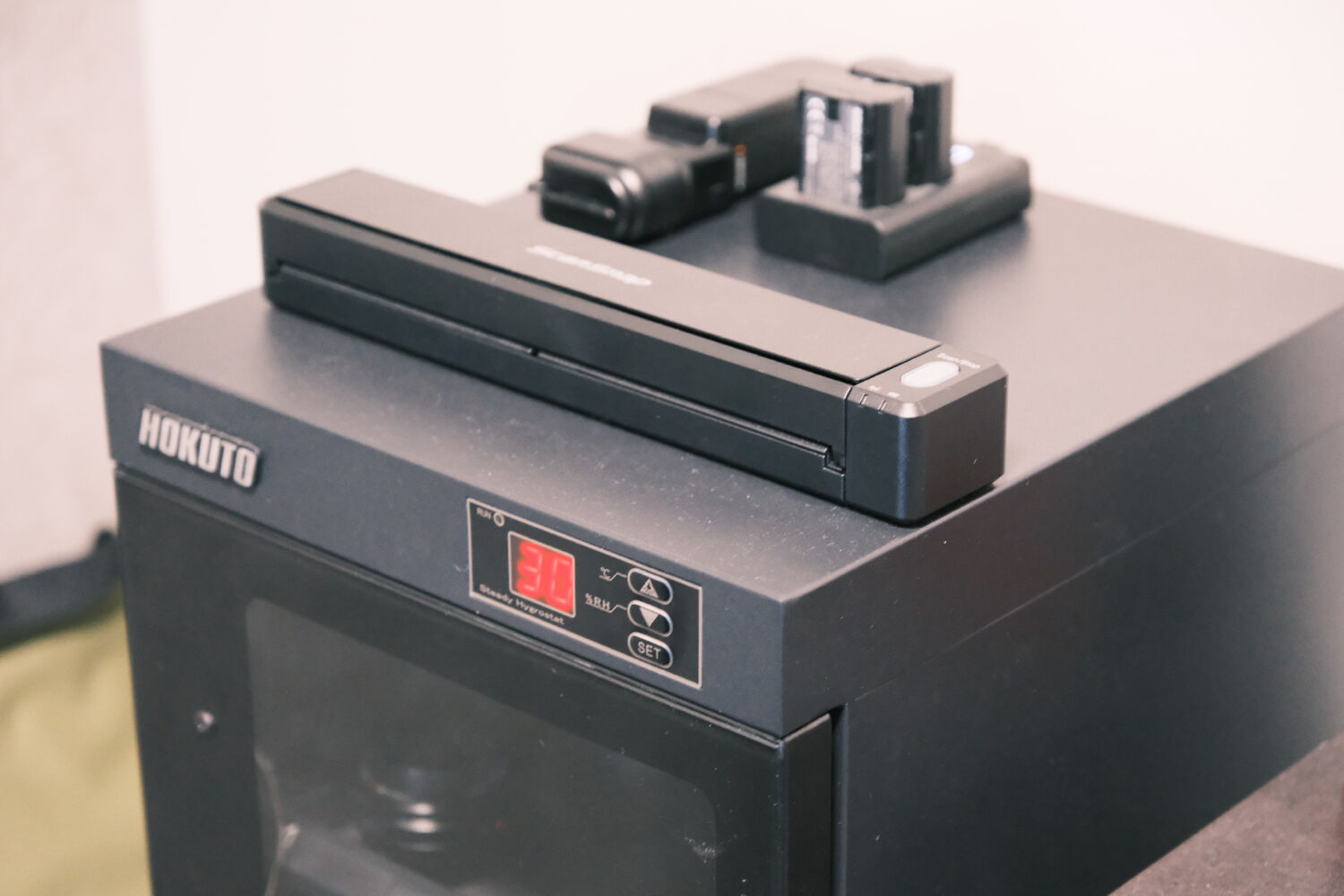 もともと所有していたScan Snap S1500はしばらくしたら押し入れの奥底に眠ってしまっていたが、iX110の常備ポジションは手の届きやすい防湿庫の上。